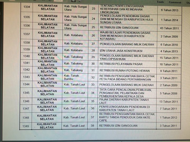 Dari sekian banyak Perda yang dikeluarkan oleh Pemkab/Kota di Kalsel, termasuk 1 Perda yang dikeluarkan oleh Tanah Bumbu, yakni Perda Retribusi Penggantian Biaya Cetak Peta Pada Bidang Pertambangan, atau Perda No 3 Tahun 2011.