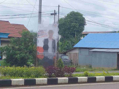 Sejumlah APK masih tampak di tepi jalanan umum di kawasan Kelurahan Gunung Tinggi Kecamatan Batulicin Tanah Bumbu, terdapat pula spanduk Capres fasilitas milik warga.